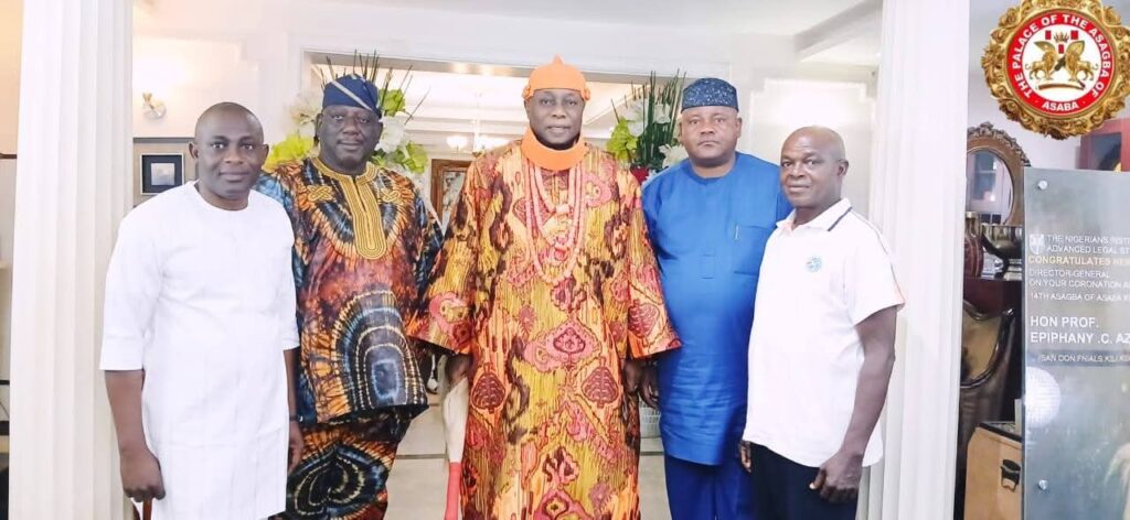 The National President of the National Association of Scrap and Waste Dealers Employers of Nigeria -NASWDEN, Comr. Engr. Pst. Luke Uchechukwu Ogbu, has led a Super Delegation on a courtesy visit to His Royal Majesty, Asagba Prof. Epiphany Chigbogu Azinge, SAN, OON, FINALS, FICMIC, LLD (HC), KSJI, KSG, The Asagba of Asaba.